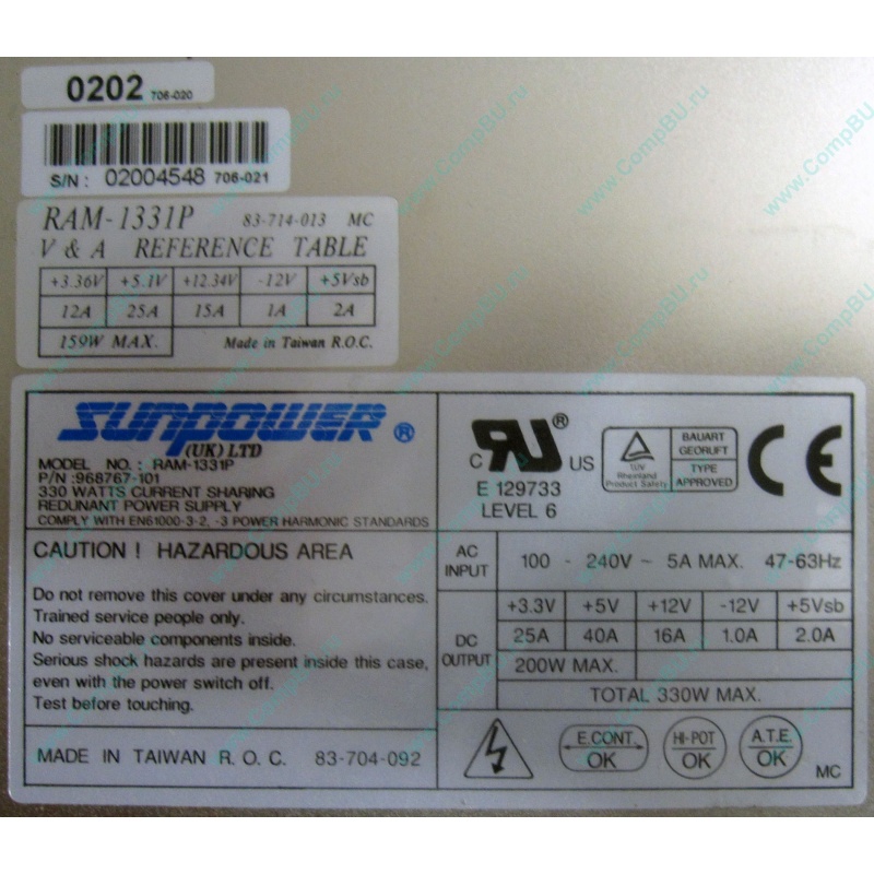 HP Power supply receiver assembly Sunpower RAM-1331P for Tape Library HP StorageWorks MSL5026, MSL5030, MSL6030.